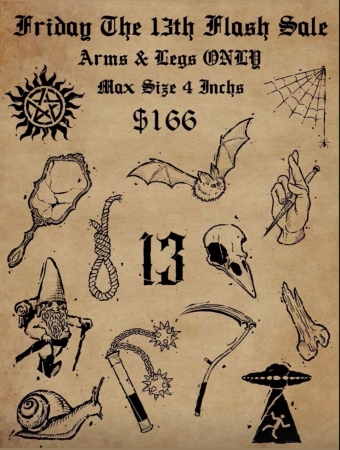 Friday the 13th Flash at Oddities Tattoos and Antiques