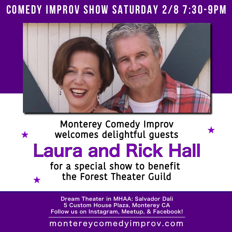 Join the Peninsula's Fiercely Funny Improv Troupe and their special guest performers, Laura Hall of the hit show Whose Line Is It Anyway? and her husband, actor Rick Hall, as they use audience suggestions and volunteers to create hilarious scenes right on the spot! Proceeds from this benefit show go to The Forest Theater Guild. Show begins at 7:30pm. There will be nibbles and raffles before the show at 6:15pm.