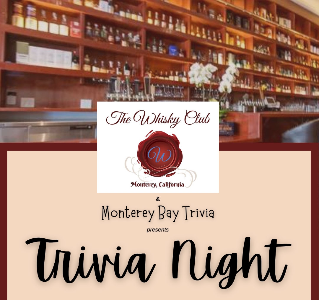 The Whisky Club and Monterey Bay Trivia present Trivia Night on the first and third Thursdays of every month, 5pm-7pm. Come and join us for drink specials, small bites, and fun! Prizes include exclusive merchandise, gift certificates, and more.