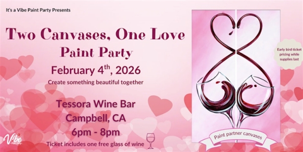 Let's get creative at the Two Canvases, One Love Paint Party, where art and fun collide in a colorful explosion!