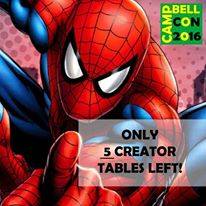 Urgent message for Exhibitors, Vendors, and Creators. Campbell Con literally has one large table available, and five creator tables. Large table is good for comic shops, toys, Exhibitors ect. We are posting this because last year we had pages and pages of waiting lists and we want to give people ample warning and an opportunity to be part of Campbell Con 2016. We feel that it is important to let everyone know so there is no surprises when the convention sells out and opportunity lost for those who did not act in time. Get on board while you can and we look forward to seeing everyone.