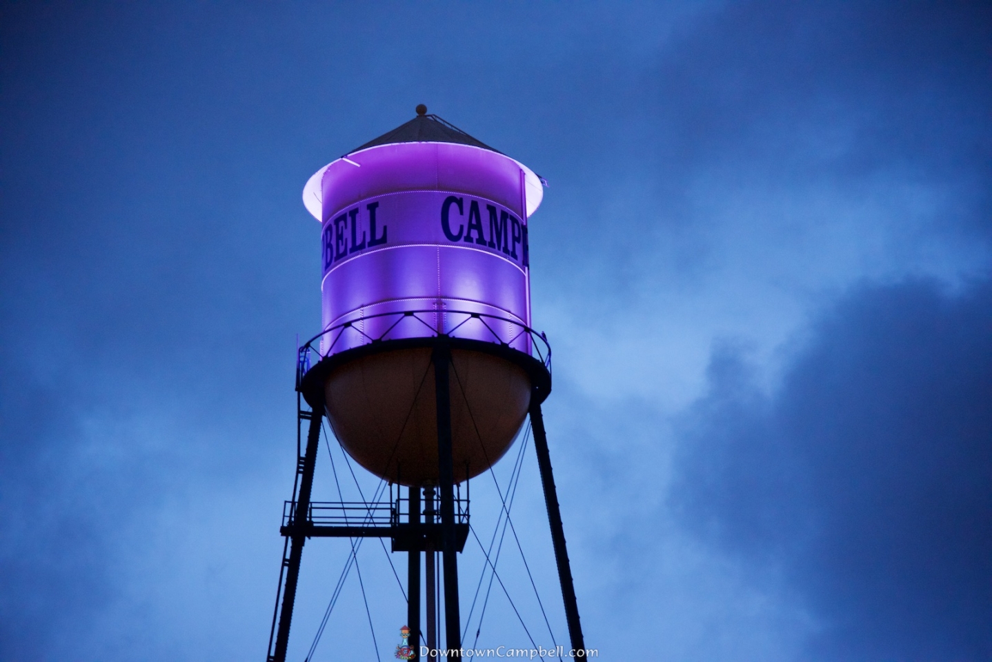 As you may have noticed the City of Campbell has been lighting up the historic Campbell Water Tower to commemorate special occasions. The San Jose Mercury news reports on the City Council's plan for how non-profit organizations and individuals can submit requests in writing to have the city landmark colored to mark a special event.