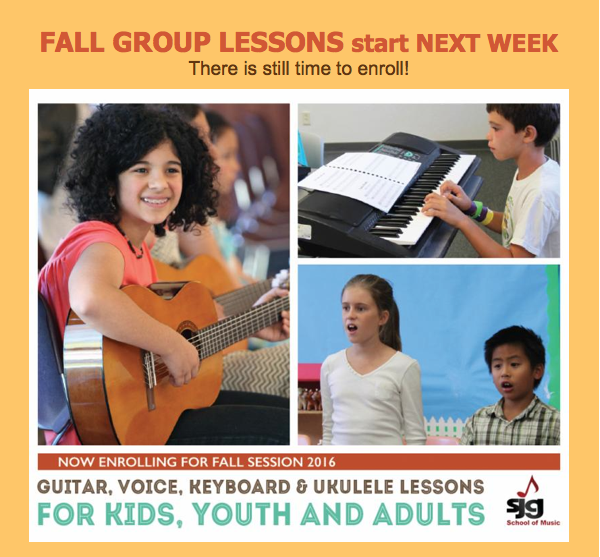 Fall session is about to begin! Don't miss your opportunity to sign up for classes in guitar, voice, piano and ukulele.
