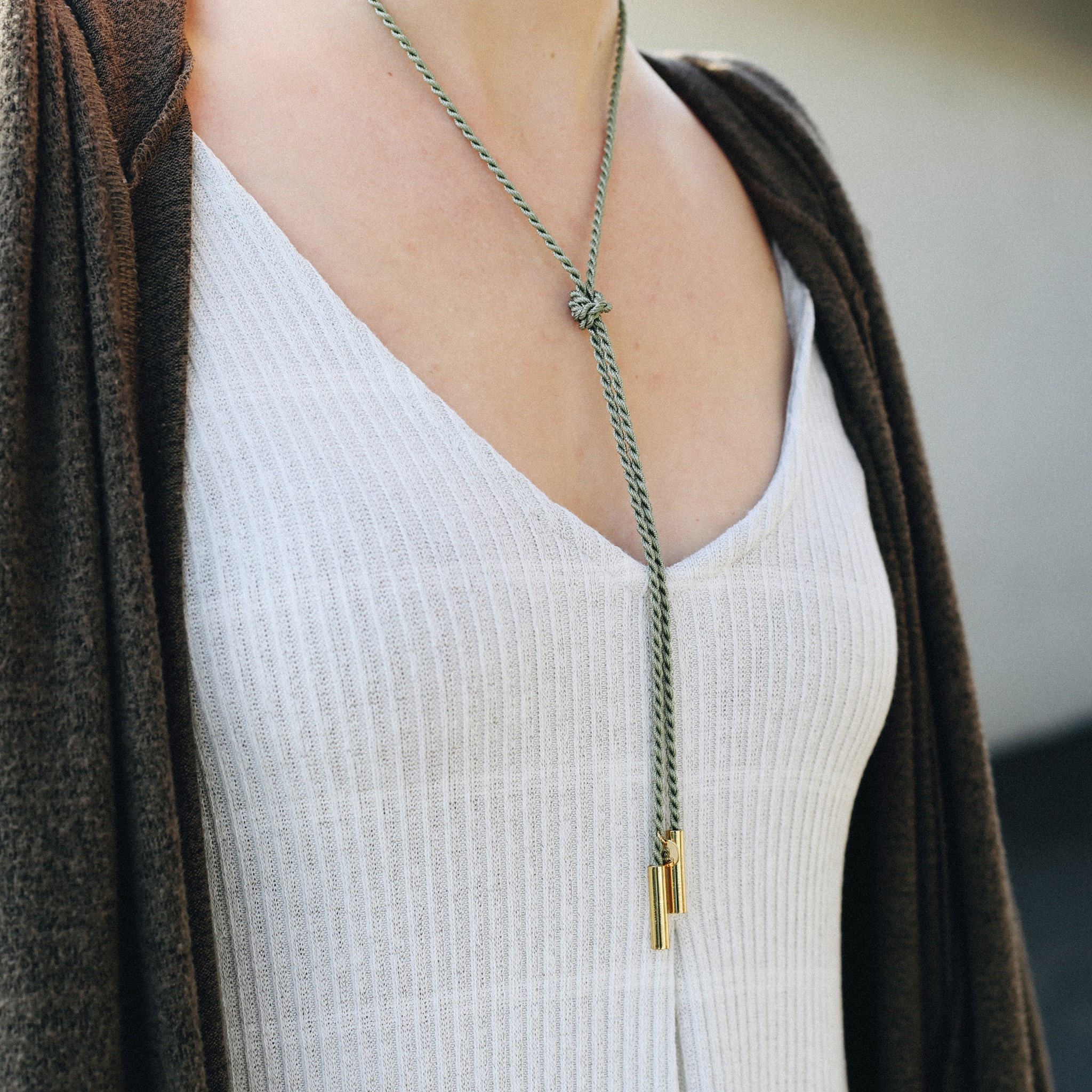 We love this take on the trendy wrap style chokers by Pretty things made daily. She twists tiny threads of silk together to make a gorgeous rope- finished off with gold fill details!