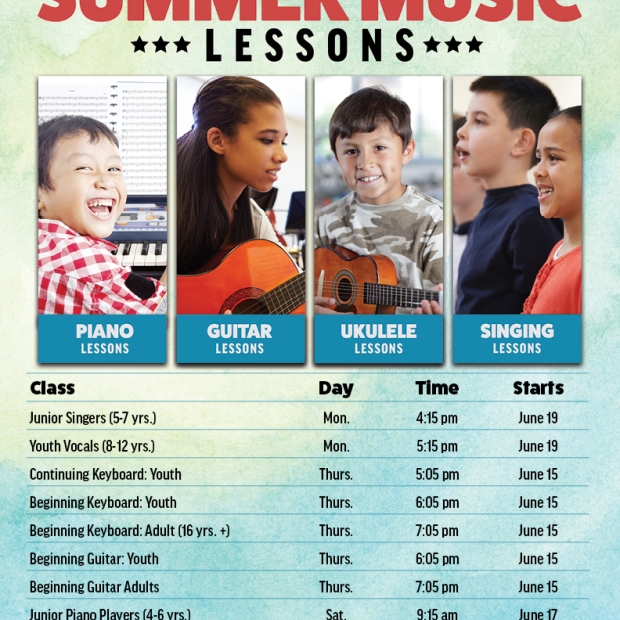 Don't miss your opportunity to sign up for classes in guitar, voice, piano and ukulele.
