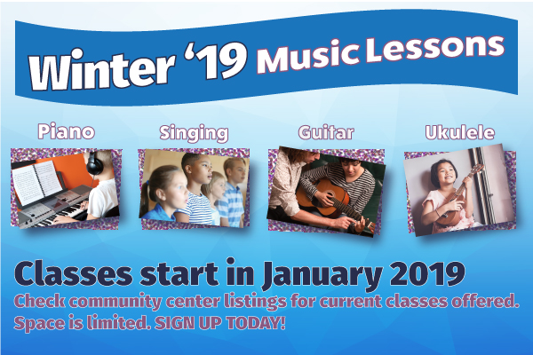 Don't miss your opportunity to sign up for classes in guitar, voice, piano and ukulele.