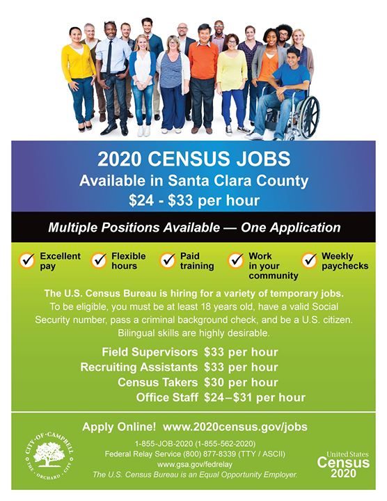 To assist with the 2020 Census, the U.S. Census Bureau is now hiring for a variety of temporary jobs. To be eligible, you must be at least 18 years old, have a valid Social Security number, pass a criminal background check, and be a U.S. citizen. Bilingual skills are highly desirable.
