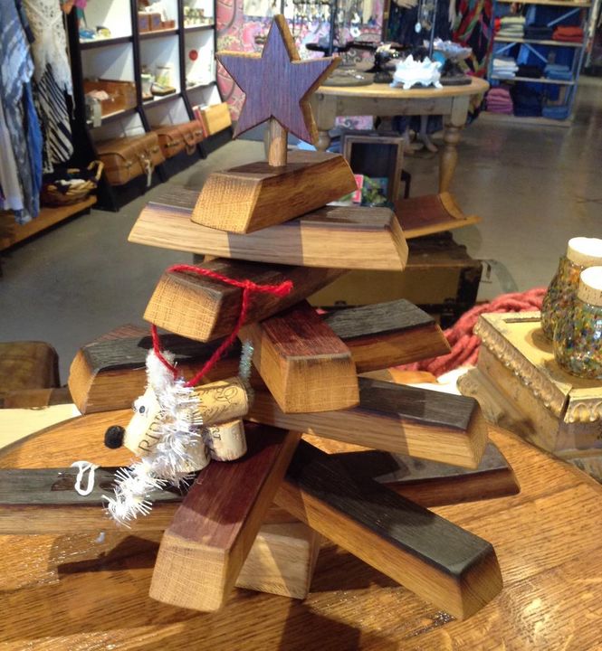 Things like this little Christmas tree made from wine barrels. Clever! Two left at Simply Smashing. More Infohttps://www.facebook.com/...https://www.facebook.com/SimplySmashingBoutique/photos/a.1015529135488...