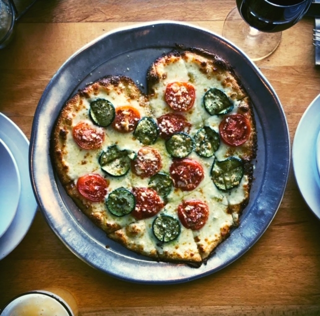 Show your inner romantic with a cheese pizza, pepperoni pizza, white pie pizza, or an Italian combo pizza. Each heart shaped pizza is expressed as a large thin crust that serves between 2-4 people each.