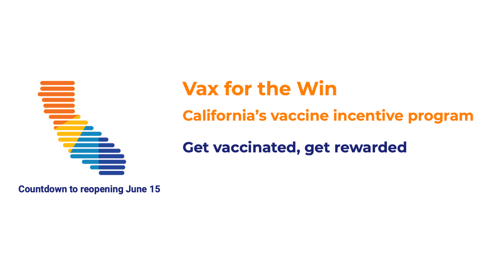 If you haven't been vaccinated yet, did you know that as part of California's Vax for the Win program you can get a $50 gift card and a chance to win prizes of $50,000 and $1.5 million as a reward for getting vaccinated? You just have to get at least your first shot by June 15th to qualify.