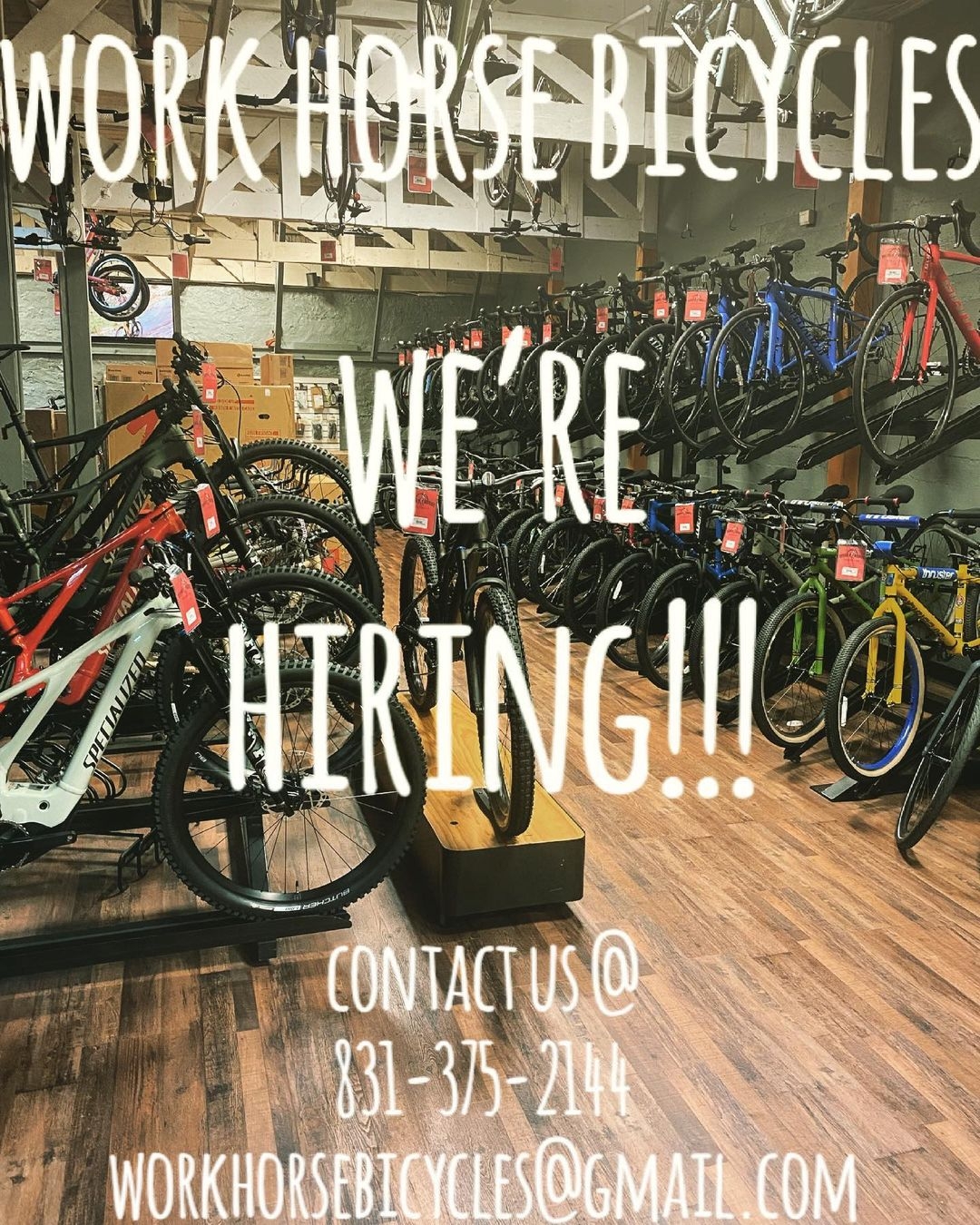 Workhorse Bicycles, located at 486 Washington Street in Downtown Old Monterey, is currently looking for a few smiling faces to join our team. Feel free to stop by and fill out an application form or call us at 831-375-2144.