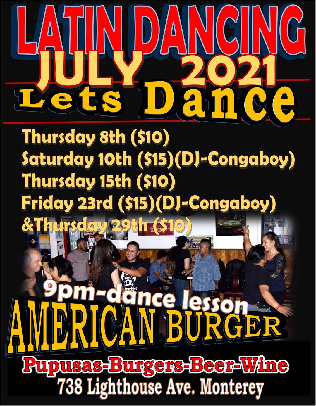 Great news, everyone! Latin Dance Nights have returned to American Burger at 738 Lighthouse Avenue in Monterey. Doors open at 9pm, when we'll begin with a dance lesson. All levels of dancers are welcome. Face masks are recommended.