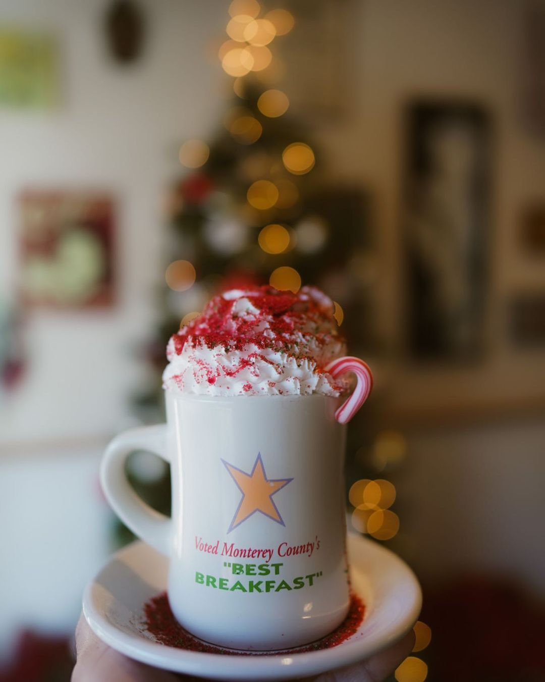 Hot chocolate season is here and so is Old Monterey Cafe's hot chocolate special. They know how to do it right, with whip cream, a candy cane, and the obligatory sprinkles. Have a cup and warm up! Old Monterey Cafe is located at 489 Alvarado Street.