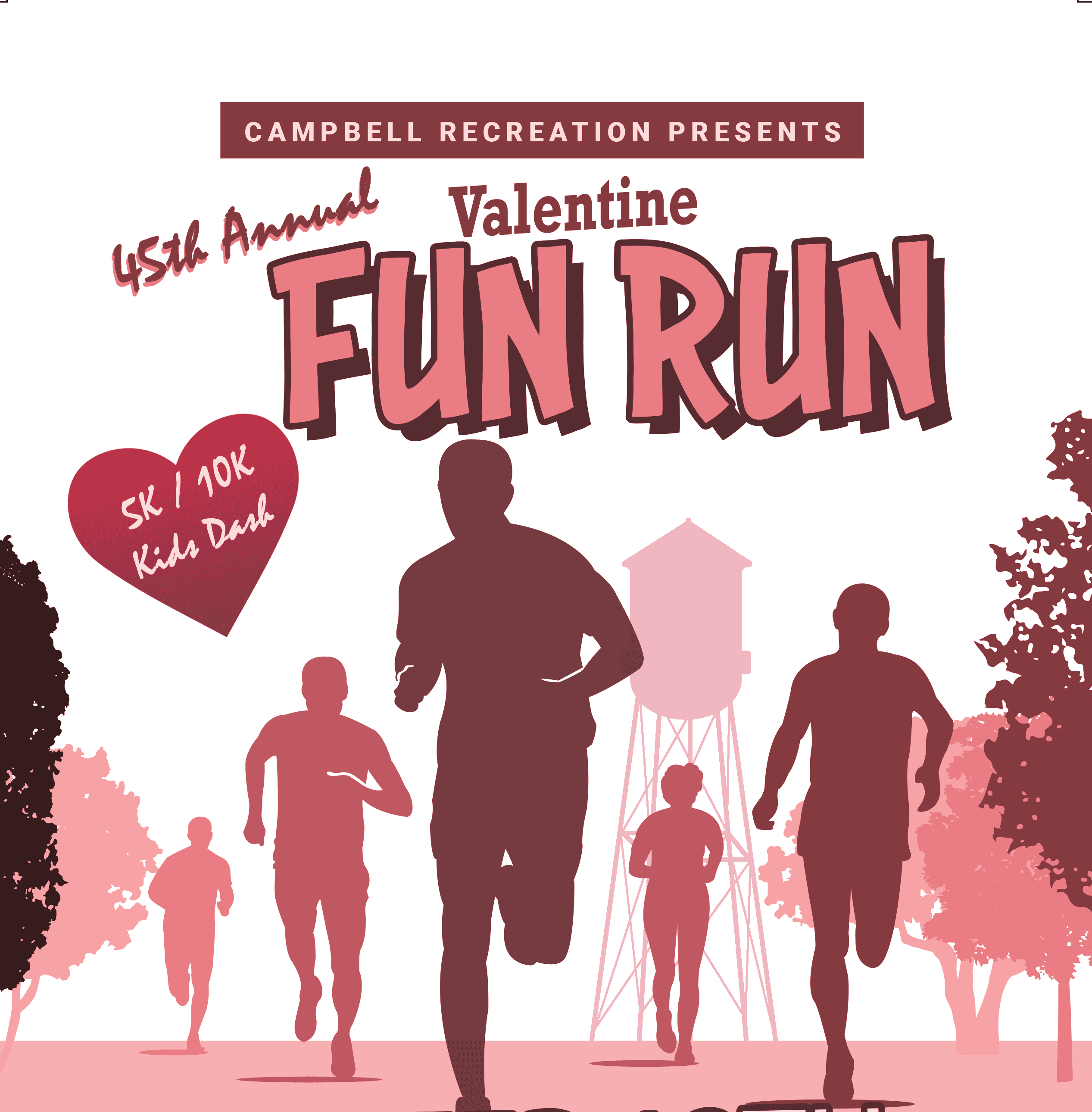 We are excited to celebrate the City of Campbell's 45th Annual Valentine Fun Run with you. However, due to COIVD-19, we are postponing the event to spring in hopes that we can see you in person.