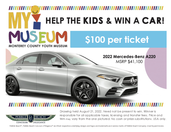 The Pebble Beach Concours d'Elegance and Mercedes-Benz have chosen Monterey County Youth Museum as one of the local nonprofit organizations to benefit from their annual car drawing. The winner of the drawing will receive a brand new Mercedes-Benz A220 (MSRP $41,100).