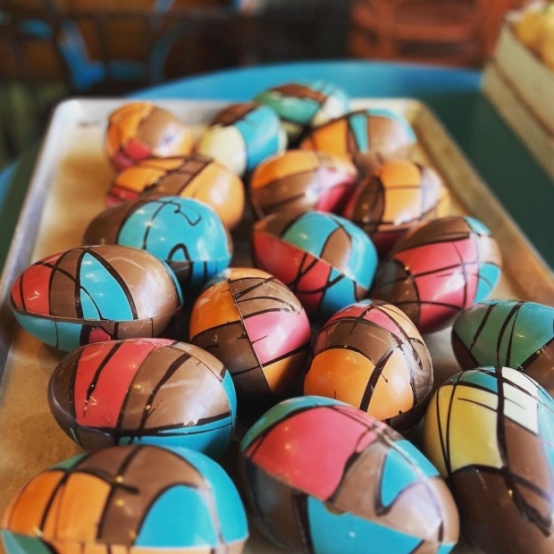 Easter chocolates are now available at Parker-Lusseau Pastries and Cafe in Downtown Old Monterey. We make everything in-house and our first batch came out beautifully, thanks to our veteran chocolatiers, Poncho and Ana.