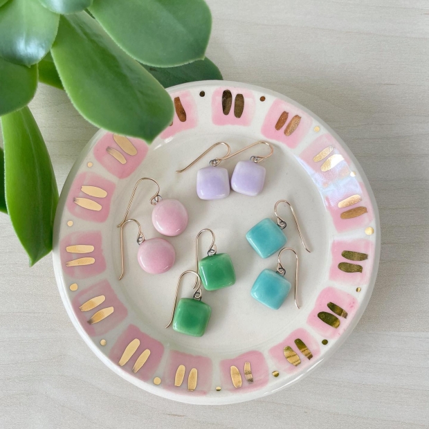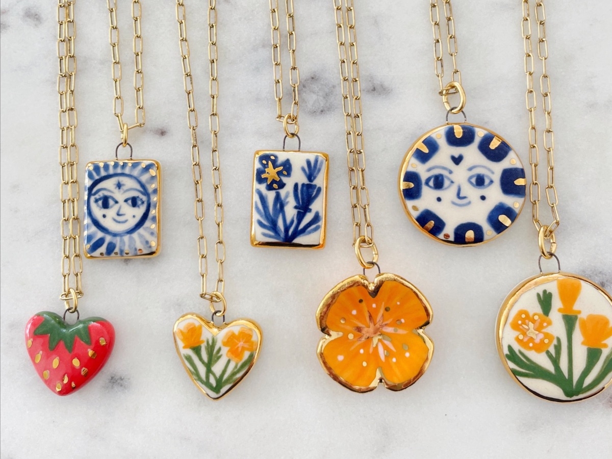 Casey Starks Studio has new ceramic pendants and earrings! Each one is unique, hand crafted and hand painted by Casey, and pendants are accented with 22k gold.