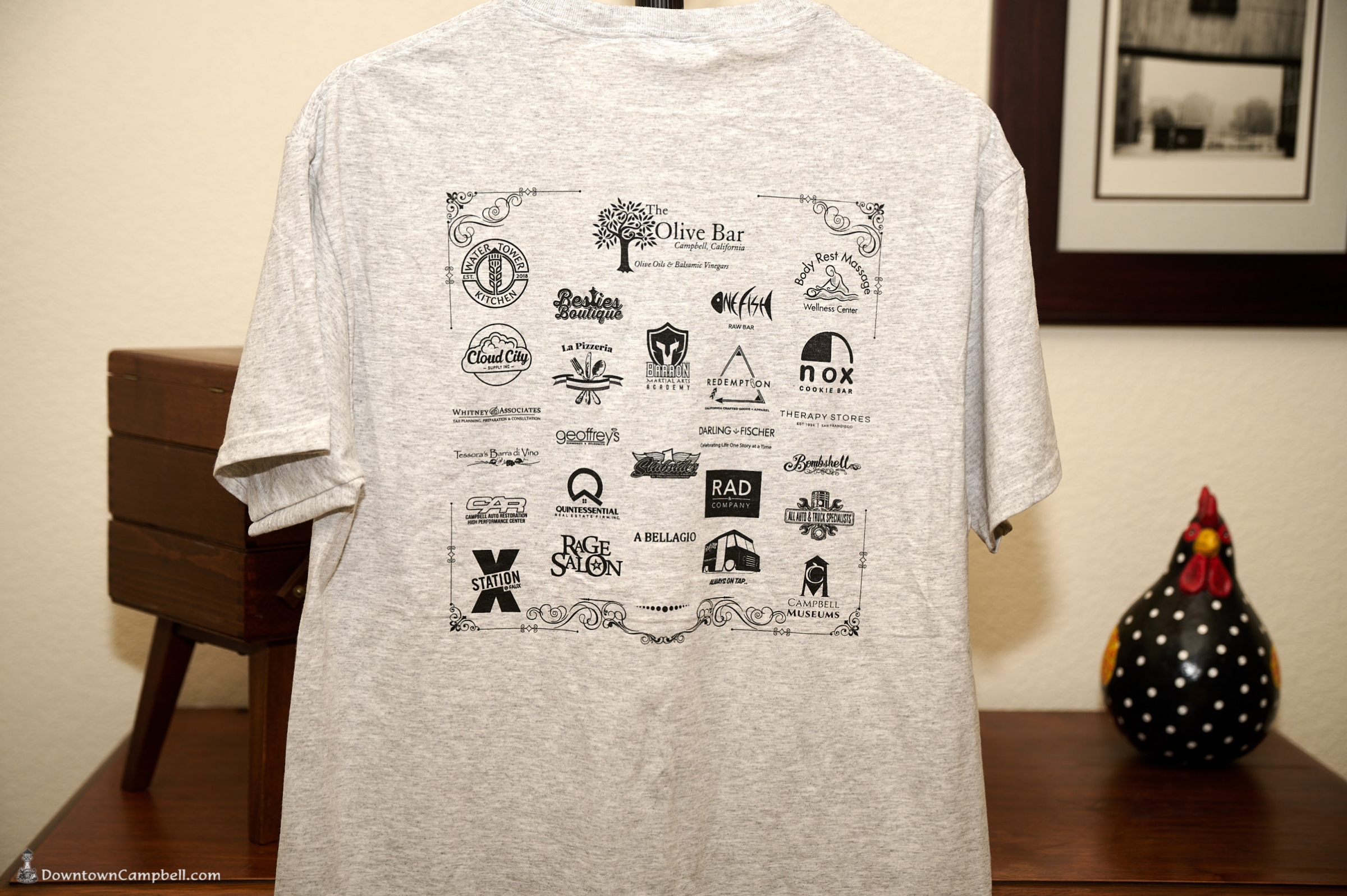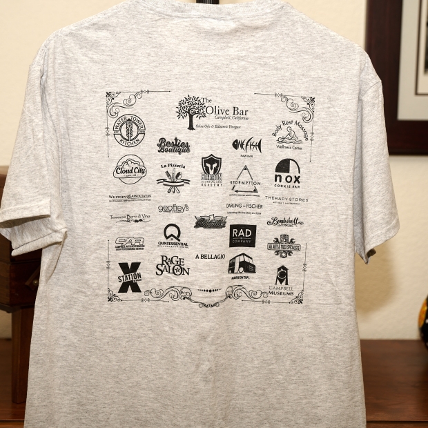 We still have a limited supply of t-shirts from last weekend's car show! If you want to get your hands on one of these Campbell local collector's items, they'll be available starting next week at The Olive Bar in Downtown Campbell.
