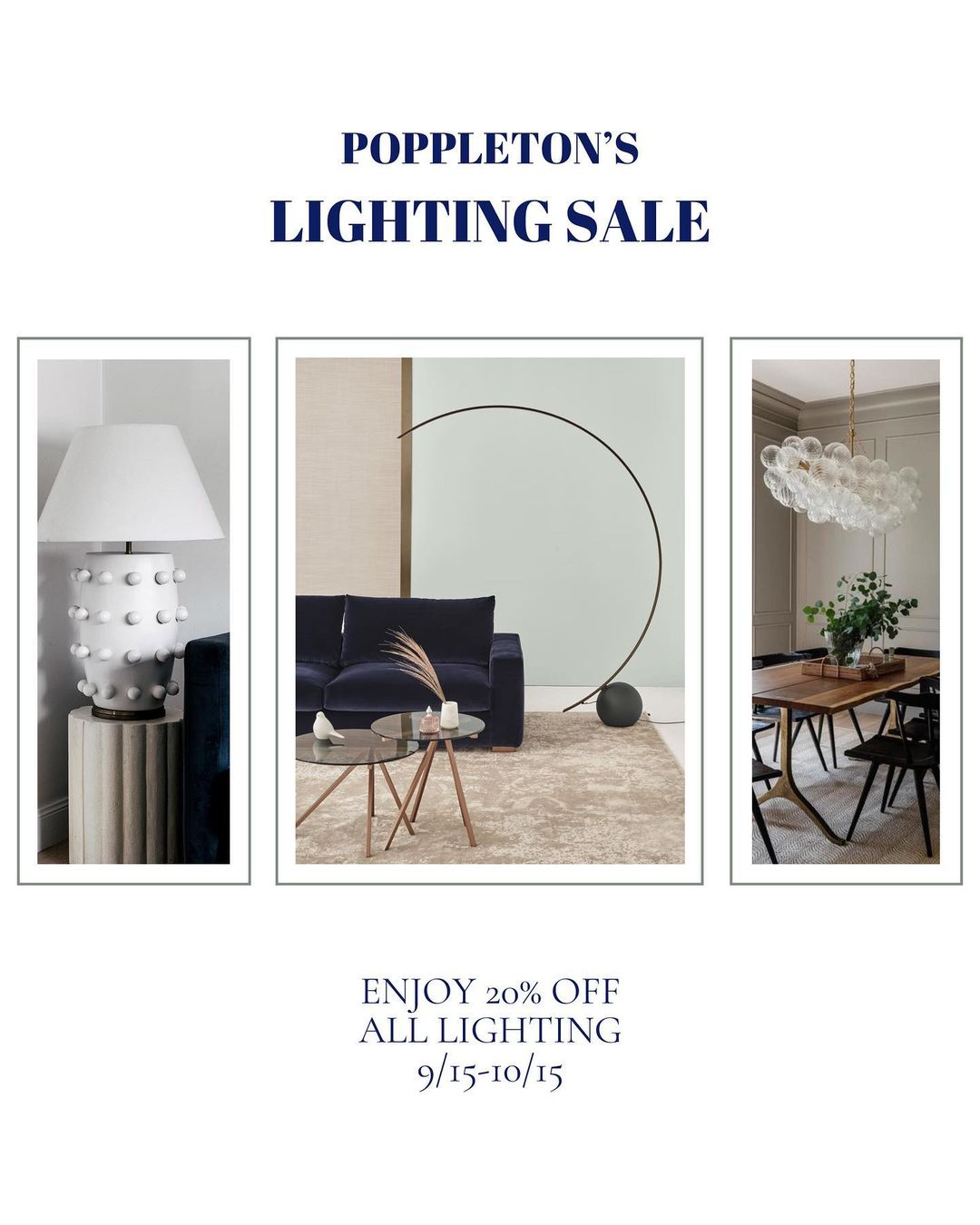 Poppleton’s Interiors is offering 20% off all lighting, now through October 15, 2023. Shop our showroom to enhance your home with beautiful lamps, chandeliers, and more. Visit us at 299 Lighthouse Avenue in Monterey.