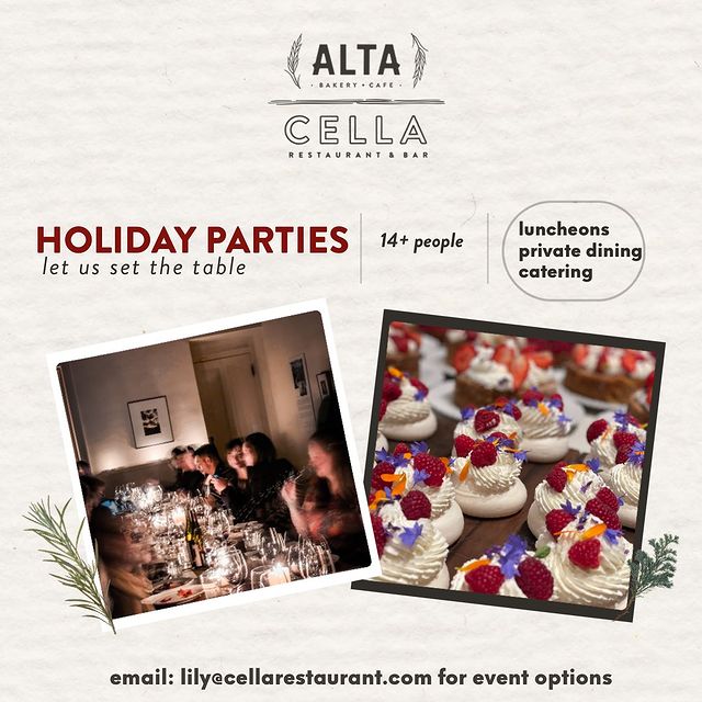 Planning a celebration for 14 or more? Email Lily at Cella to discover how we can make your event extraordinary. We’re excited to help you craft unforgettable memories during this holiday season and beyond.