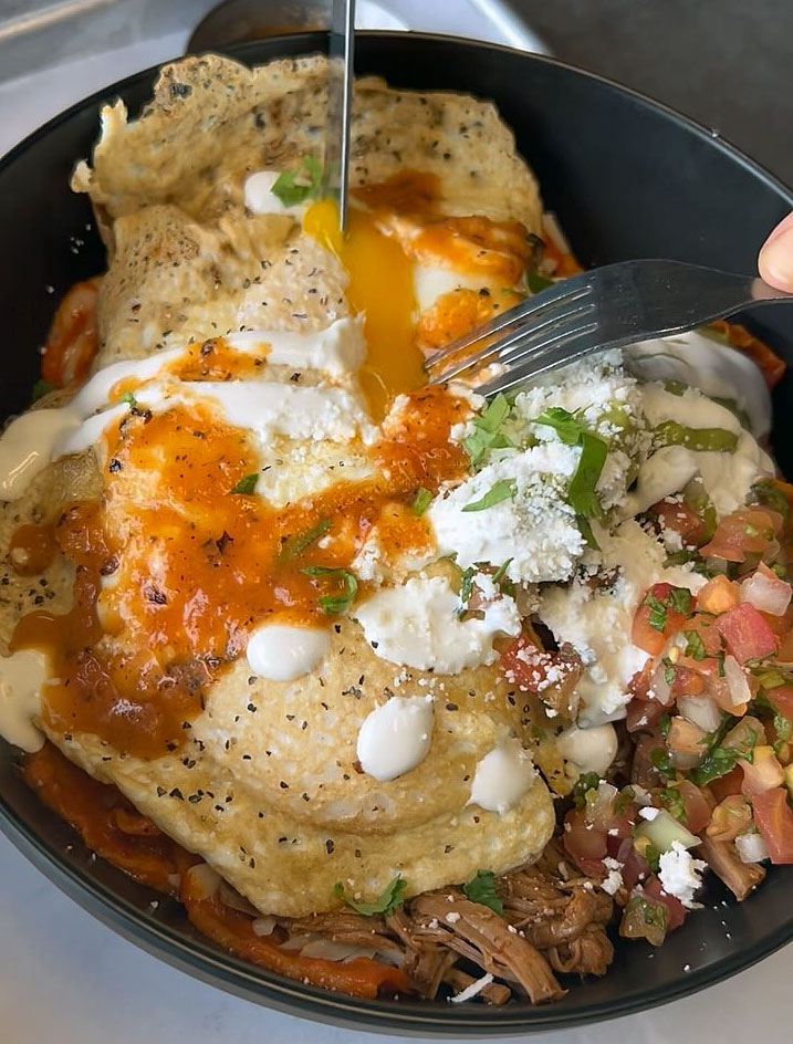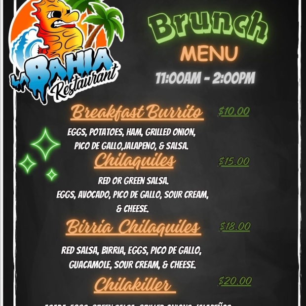 Our new brunch menu features mimosas plus our breakfast burrito, chilaquiles, birria chilaquiles, and our infamous chilakiller (with carne asada, eggs, green salsa, grilled onions, jalapeƱos, pico de gallo, guacamole, sour cream, and cheese).