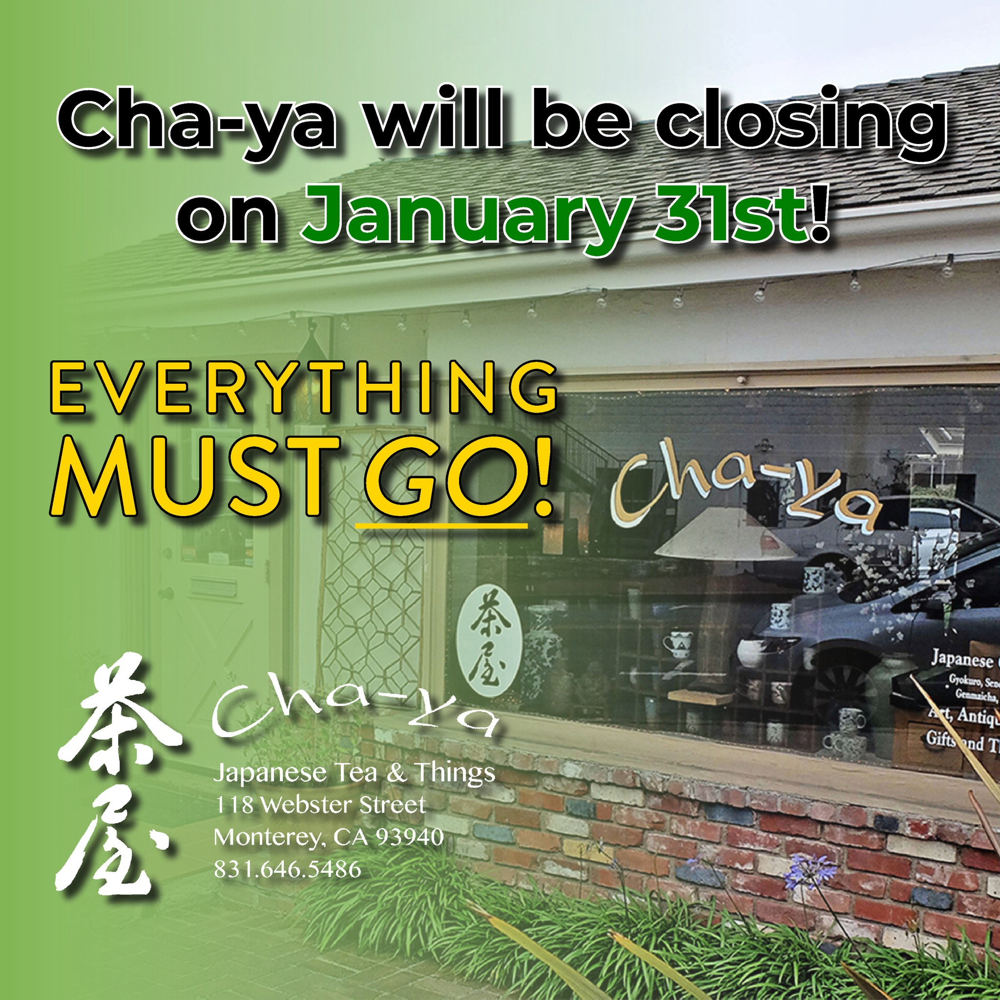 Cha-ya Japanese Tea and Things is in the final days! We'll be closing our doors on January 31, 2024 and everything must go before then. Any reasonable offer will be accepted and we are offering deeper discounts on our already low prices.