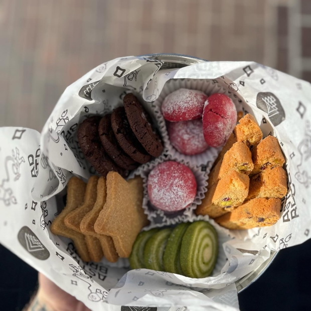 Offering sourdough breads and festive little cookies. No pre-orders available, just stop by the shop.