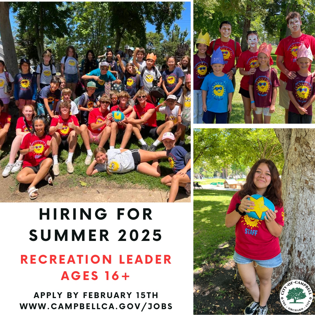 The City of Campbell’s Recreation & Community Services Department is hiring Recreation Leaders I, II, & III! If you’re motivated, energetic, and love working with kids and teens, this is the perfect opportunity for you.