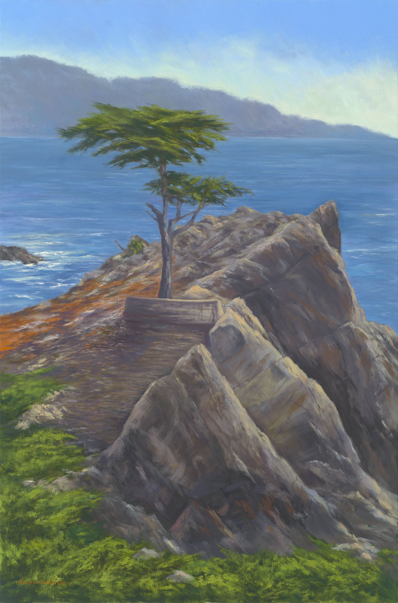 Sherree Anderson’s love of the Monterey Peninsula and Hawaii is showcased in her beautiful and colorful paintings of seascapes and landscapes, one featuring the famous Lone Cypress in Pebble Beach. Her realistic style invites the viewer to feel as if they could step into her paintings.