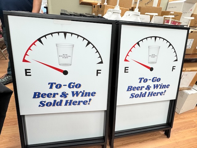 Be on the lookout for "Filling Station" signs. That's where you can buy beer or wine in to-go cups that you can walk around with.