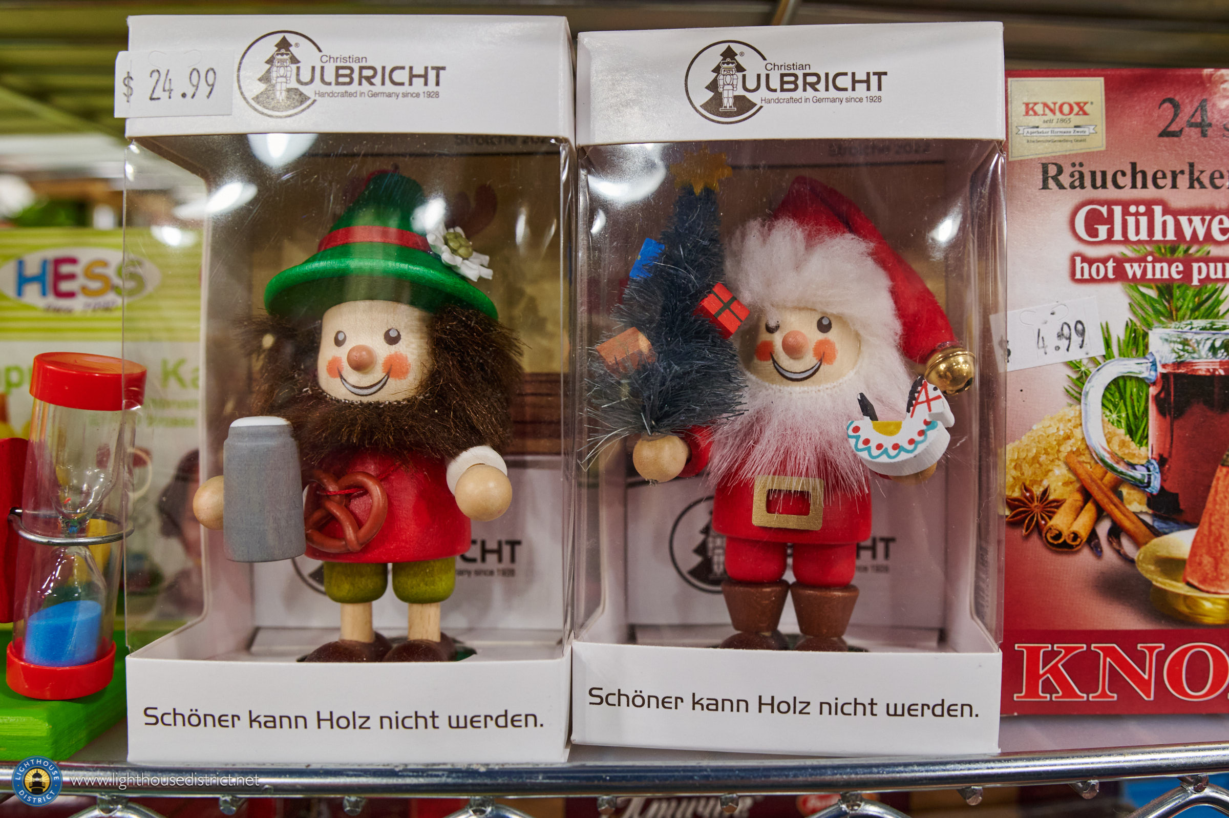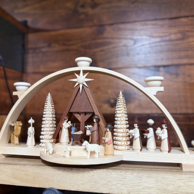 These include an assortment of tree ornaments, handcrafted gnomes from Christian Ulbricht, small nativity scenes, and Weihnachtspyramide, traditional German Christmas pyramids that bring gentle light and cheer to the home.