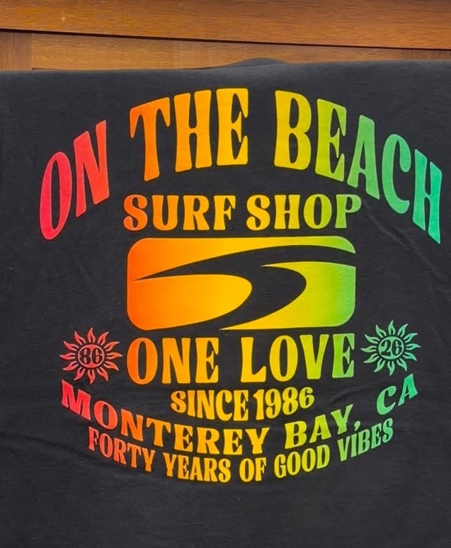 On The Beach Surf Shop is about to celebrate our 40th anniversary and we've just introduced our new commemorative t-shirts, long sleeves, hoodies, and men's tanks to the store. It's a Good Vibes logo celebrating 40 years of On The Beach!
