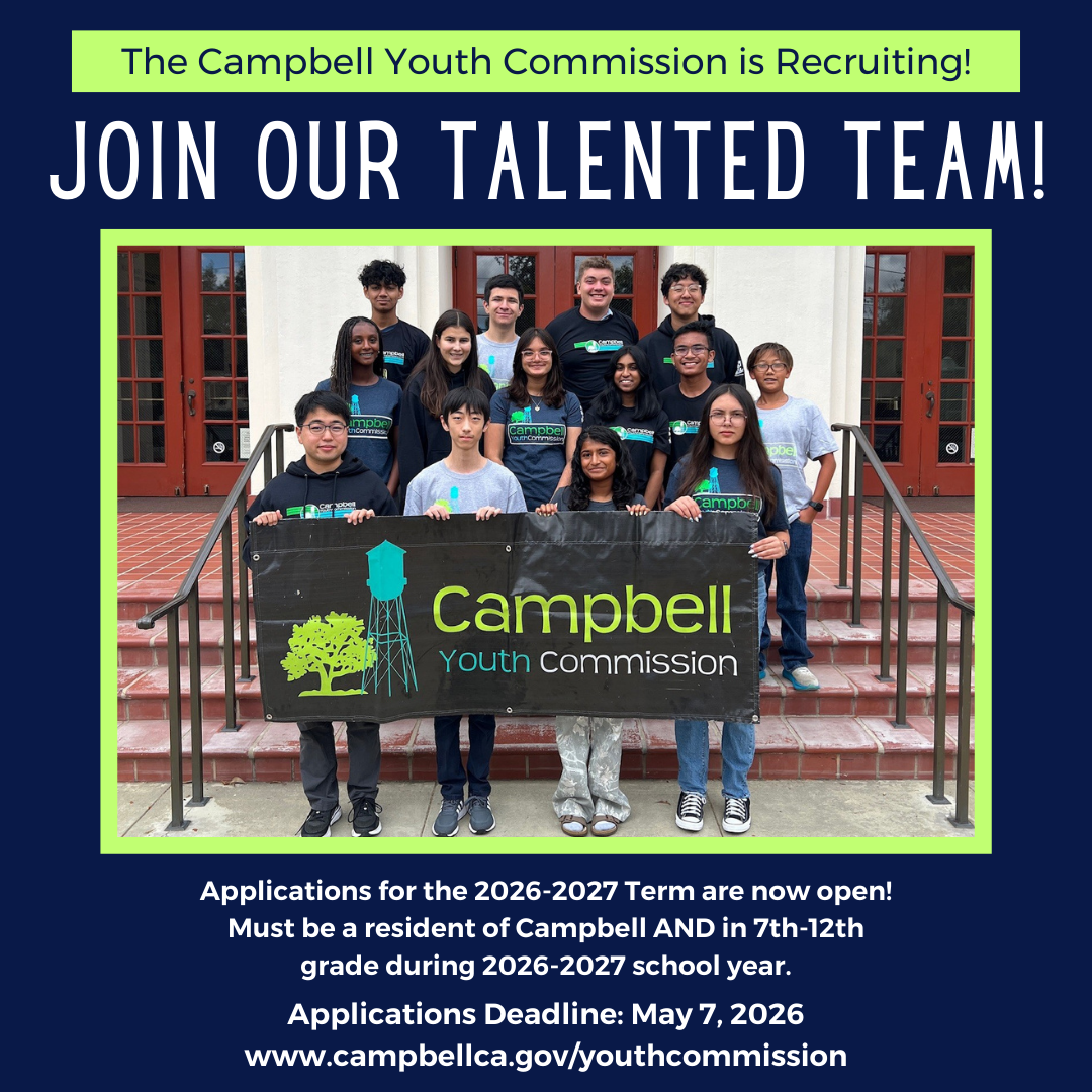 For more information and to apply, visit: www.campbellca.gov/youthcommission