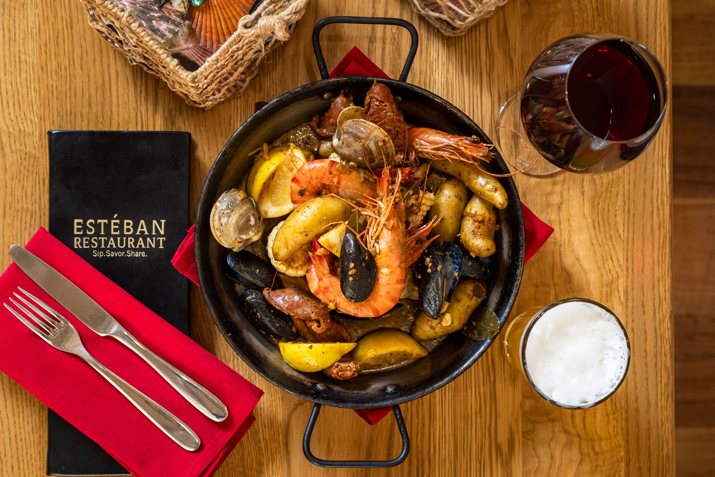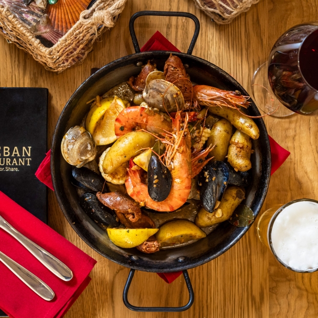 From New England to the American South, and finally the West Coast, a shellfish boil is one of America’s great communal dining traditions. Esteban Restaurant offers a unique twist, infusing this feast with vibrant Spanish influences.