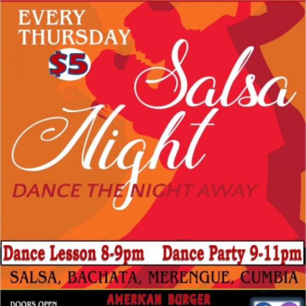 American Burger hosts Latin Dance Nights every Thursday! Come enjoy salsa, bachata, and more. Doors open at 8pm, when we'll begin with a dance lesson with Tanya. Dance party runs 9pm-11pm. All levels of dancers are welcome. $5 cover.