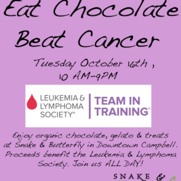 Stop by Snake and Butterfly in Downtown Campbell, Tuesday, October 16th all day and enjoy organic chocolate, gelato, and treats, all for a good cause! Proceeds from sales made on the 16th will benefit the Leukemia & Lymphoma Society. Get...