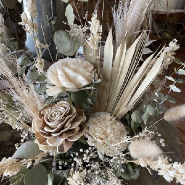 In this class you will learn to create your own wreath with a variety of dried florals and greenery. All materials are included in cost and you get to take home a dried wreath for your home that will stay beautiful for years!