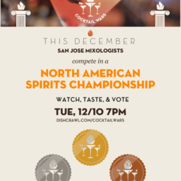 On December 10, 7pm-10pm at the Blackbird Tavern Annex, San Jose mixologists will complete in Dishcrawl 's North American Spirits Championship.....also known as Cocktail Wars! Dishcrawl invites you to participate by joining us, sampling a tasting menu of the...