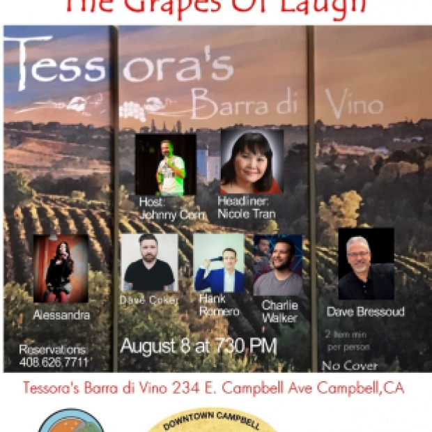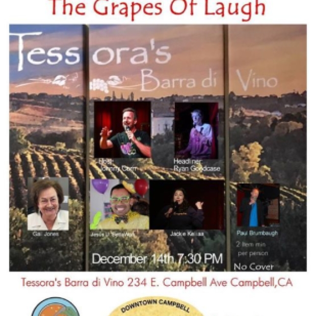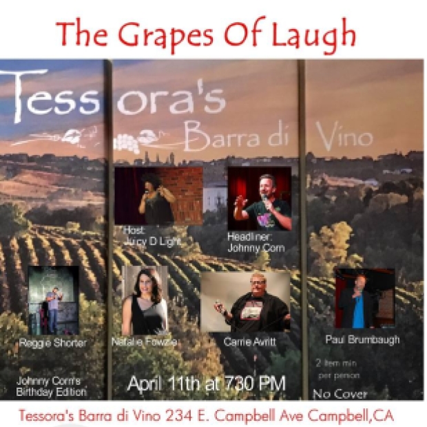 This month's headliner for our monthly Grapes of Laugh Live Comedy show is James Hamburger Matthews. Also featured are Brenda Lamberty, Wily G, Curtis Taylor III, Chree Powell, David Stolowtz, and the host, Johnny Corn. This will be fun and it'll be a great way to start a year of live comedy in Downtown Campbell!