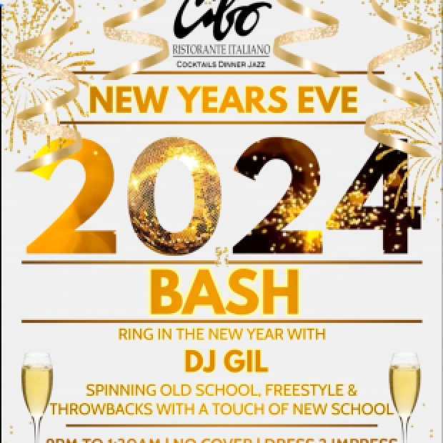 Cibo Ristorante Italiano invites you to join us for our annual New Year's Eve Bash! We'll be celebrating 9pm-1:30am, no cover charge. Come ring in the new year and dance to the music of DJ Gil! Dress to impress. We'll have drink specials all night. Dinner will be served until 10pm - reservations recommended.