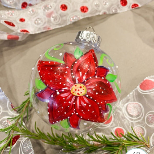 Be inspired to create your own hand-painted painted ornament featuring beautiful "Holiday Poinsettias"!