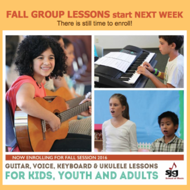 SJG School of Music offers group music lessons for piano/keyboards, guitar, ukulele and voice for youth and adults at 7 convenient locations in the South Bay. Classes now...