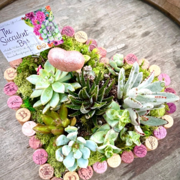 Tessora's Barra di Vino along with Michelle from The Succulent Bar welcome back our heart shaped cork and Succulent planter workshop. These Heart Shaped Planters are 10 x10 inch in size and definitely a unique conversation piece!