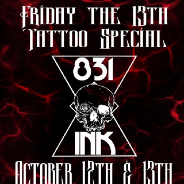 831 INK is having a Friday the 13th Tattoo Special on October 12 and 13, 3pm-9pm. Designs are available for $50 and $100 - artists' chosen designs only ( see designs here ), three colors maximum.