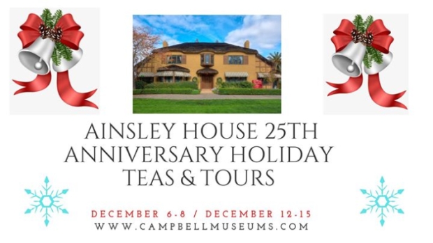 This Holiday Season the Ainsley House celebrates its 25th anniversary of Holiday Teas and Tours! Enjoy a champagne Tea followed by a tour of the Ainsley House decorated for the 25th anniversary holiday celebration.